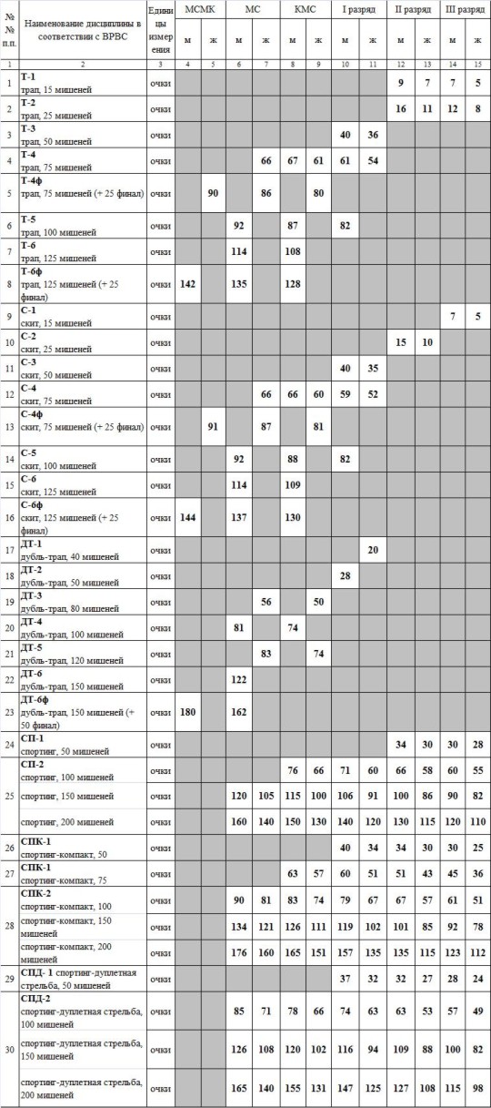 Нормы и условия их выполнения для присвоения спортивных званий и разрядов в виде спорта СТЕНДОВАЯ СТРЕЛЬБА