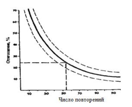 Рис.1 Связь между отягощением и числом повторений (В.М.Зациорский[4])